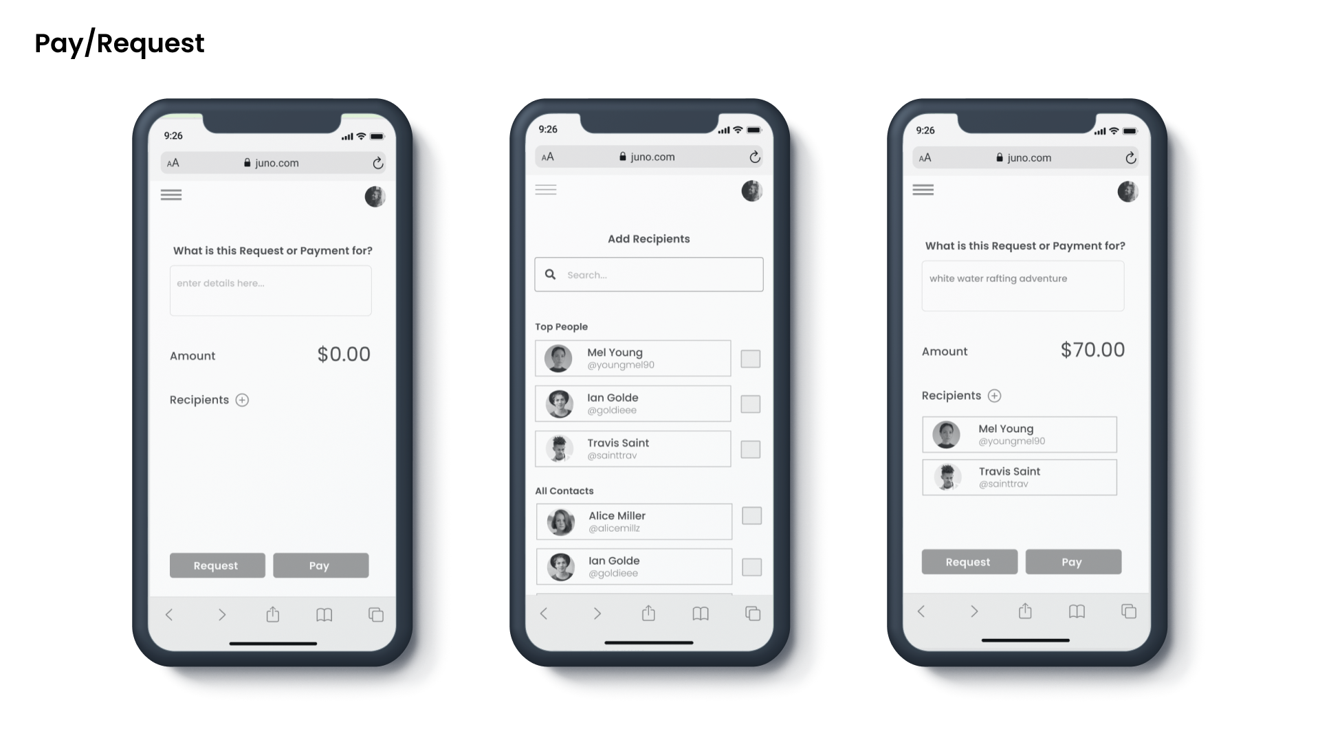 Moderated Usability Tests were conducted with 6 participants in person and over video calls. All participants were familiar with payment/financial apps and were within the target demographic.